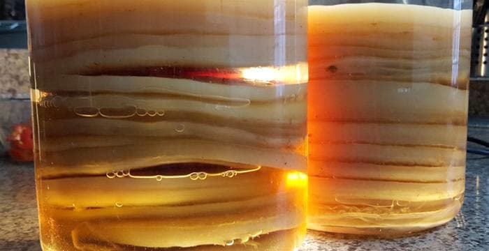 Untuk menikmatinya, kamu perlu melakukan fermentasi pertama sesuai petunjuk. Proses fermentasi ini berlangsung antara 7-14 hari. Kemudian, pisahkan induk kombuca dari larutan teh. Larutan teh hasil panen ini kemudian disaring dan siap dikonsumsi.