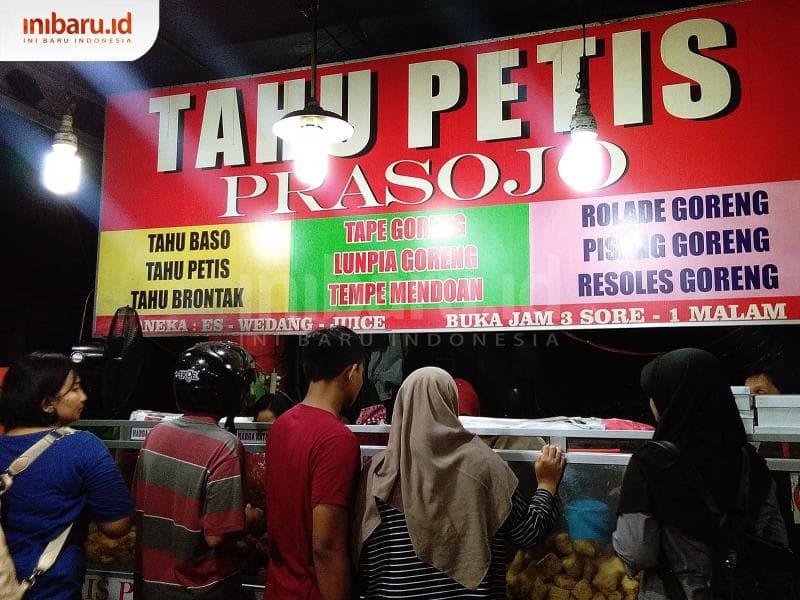 Inibaru.id – Area Pujasera Simpang Lima Minggu (1/3) sore itu diliputi suasana gerimis. Kedai-kedai yang tengah berjajar rata-rata telah membuka dagangannya. Lampu-lampu terang yang menyorot mata dari kedai memancarkan sinar yang lain. Rata-rata masih sepi pembeli, kecuali satu kedai yang dihilir mudiki orang membeli, yaitu Tahu Petis Prasojo.