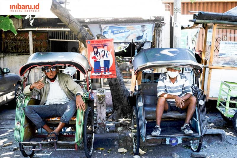 Banyak tukang becak menghabiskan waktu dengan menunggu penumpang di pinggir jalan. (Inibaru.id/ Bayu N)