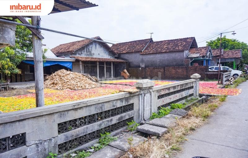Benar saja, di sana banyak halaman rumah yang digunakan untuk menjemur kerupuk-kerupuk itu. Terlihat menarik di mata saya karena pemandangan warna-warni di sebelah kanan kiri tersebut sangat jarang dijumpai di tempat lain.