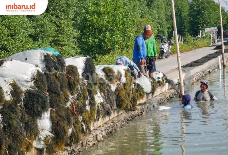 "Minim risiko. Meski terkena rob, rumput laut tetap hidup. Paling-paling sedikit layu saja saat (musim) hujan, " terang Riyanto saat ditemui Inibaru.id ketika tngah memanen rumput laut di tambaknya, belum lama ini.