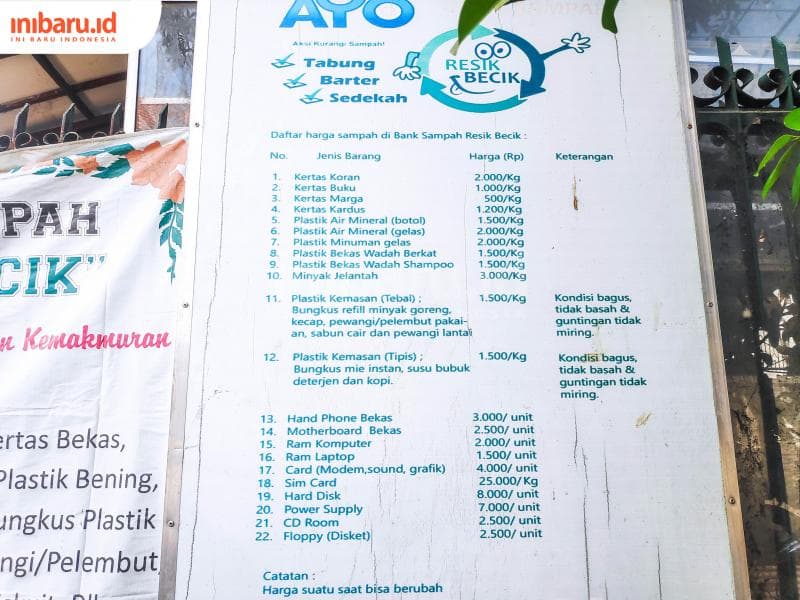 Sampah atau barang bekas yang bisa ditukarkan ke RSRB cukup beragam. Harganya pun setali tiga uang. Ika yang membelinya dalam hitungan per kilogram mengaku sengaja memasang daftar harga di depan rumahnya agar warga bisa melihat sampah apa yang memungkinkan dibarter di rumah mereka.