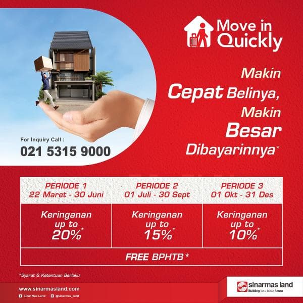 “Masih ada waktu sekitar satu bulan lebih bagi konsumen untuk memanfaatkan promo menarik periode pertama Move in Quickly,” ujar Alim, berpromosi.