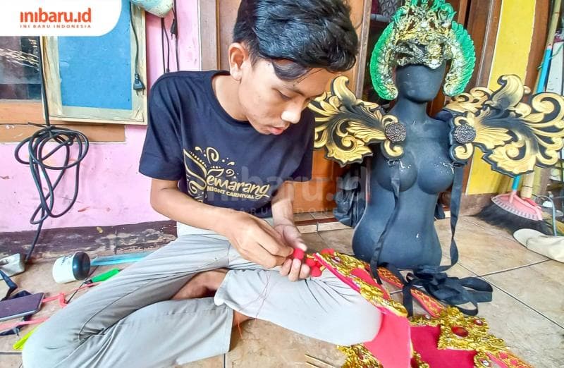 Gulungan benang, kancing, tang, cutter, gunting dan pelbagai manik-manik lainnya berceceran di teras rumah yang terletak di Jalan Darat Lasimin RT 2 RW 10 Kelurahan Kuningan, Kecamatan Semarang Utara, Kota Semarang. Terhitung sudah tujuh tahun lelaki yang akrab disapa Adhe menggeluti pekerjaan sebagai perancang kostum.