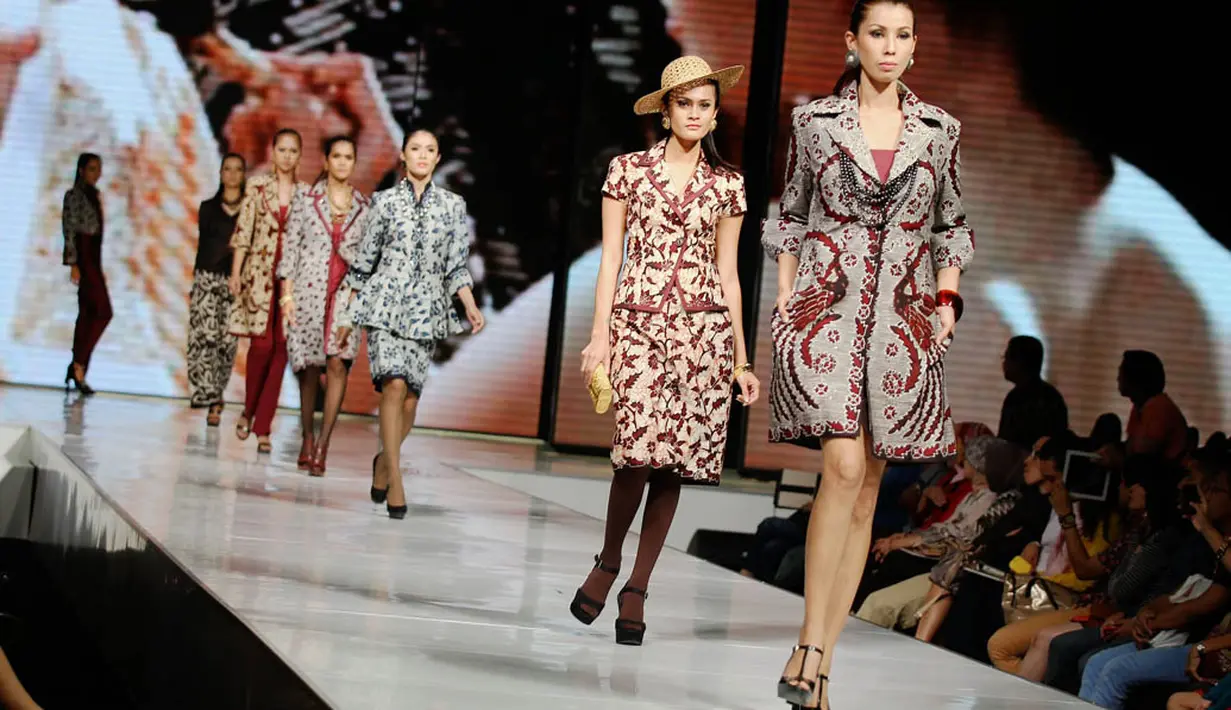 Sejumlah model mengenakan rancangan Poppy Dharsono yang bermotif batik Salem khas Brebes dalam Jakarta Food and Fashion Festival beberapa tahun silam. (Liputan6/Faizal Fanani)