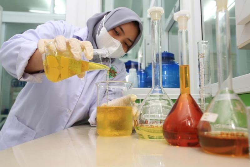 Proses pembuatan parfum dari minyak atsiri yang dihasilkan oleh nilam (<i>patchouli</i>) di Pusat Unggulan Iptek Nilam Aceh Atsiri Research Center (ARC) Universitas Syiah Kuala (Unsyiah) Banda Aceh. (Antara Foto/Syifa Yulinnas via Rakyat Merdeka)