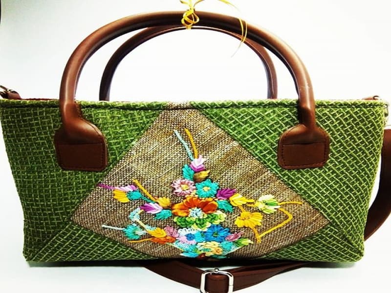 Nah, kelima jenis sulaman itu lalu diaplikasikan menjadi satu. Inilah yang kemudian menjadi pakem sulam ngapak. Adapun untuk bahan dasar kainnya, sulam ngapak menggunakan karung yang diperuntukkan khusus kerajinan.