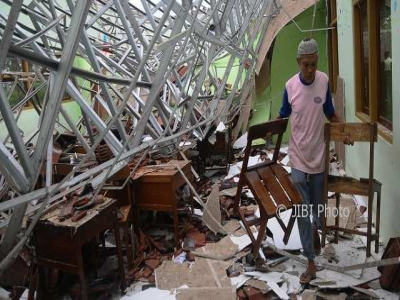 Angin Kencang Robohkan Atap Sekolah di Jepara