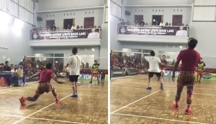 Lakukan Tingkah Nyentrik Saat Bermain Bulu Tangkis, Lelaki Berbaju Pink Ini Viral!