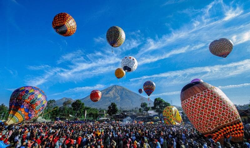 Momen Dramatis Penerbangan Balon Udara Warna-warni di Langit Wonosobo