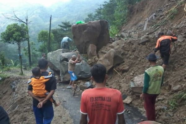 Tertimbun Material Longsor, Akses Jalan Menuju Desa Tempur, Jepara Terhalang