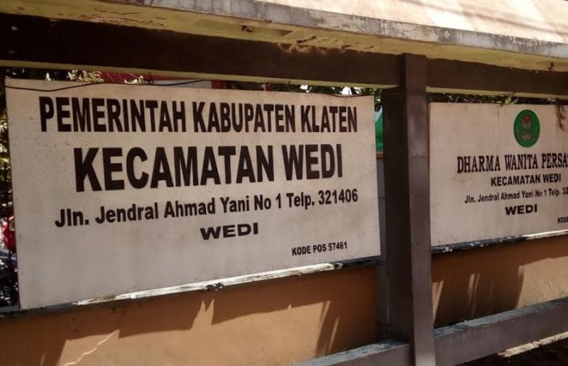 Kecamatan Wedi hanya berjarak 7 kilometer dari pusat kota Klaten. Menariknya, jika di kecamatan-kecamatan pada umumnya ada nama desa yang jadi lokasi pemerintahan dengan nama yang sama dengan kecamatan tersebut, di Kecamatan Wedi, nggak begitu. Nggak ada satu pun dari 19 desa yang masuk wilayahnya yang bernama Wedi. Kantor kecamatannya sendiri berlokasi di Desa Kalitengah.