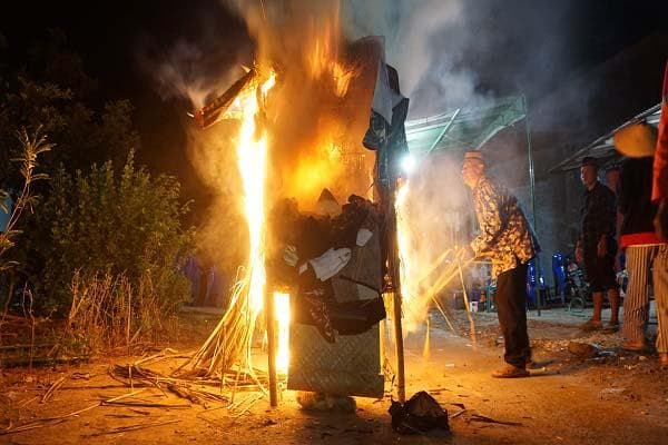 “Kalang obong biasanya dilakukan saat mitoni (tujuh hari usai orang tersebut meninggal) dan mendak (setahun kematian),” jelas Mbah Kobro.