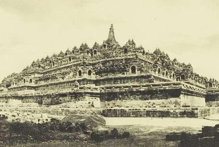 Foto Candi Borobudur lawas dengan Chattra masih terpasang di puncak. (X/tsetiady)