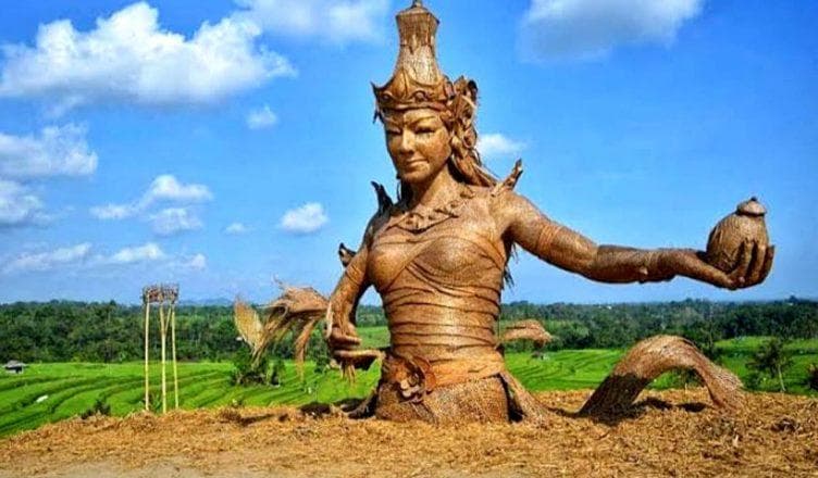 Sepasang patung pengantin Jawa yang duduk bersila, konon menggambarkan wujud Dewi Sri dan Raden Sadana.
