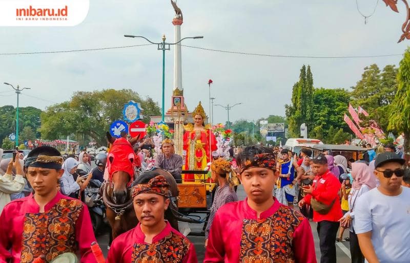 Inibaru.id - Matahari telah beringsut dari atas kepala saat sosok molek berjubah merah bermahkota ini perlahan menaiki kereta kencana di pelataran Pendopo Kartini di Kabupaten Jepara, Rabu (9/4/2025).
