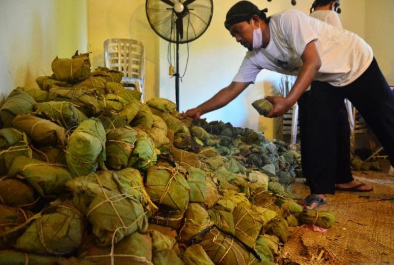 Ini Dia Asal Usul Nasi JangkrikPersis pada pukul 05.35 WIB, setidaknya 40 ribu nasi berkat yang terdiri atas nasi jangkrik yang berkuah dan nasi uyah asem yang kering dibagi-bagikan ke masyarakat yang mengantre.