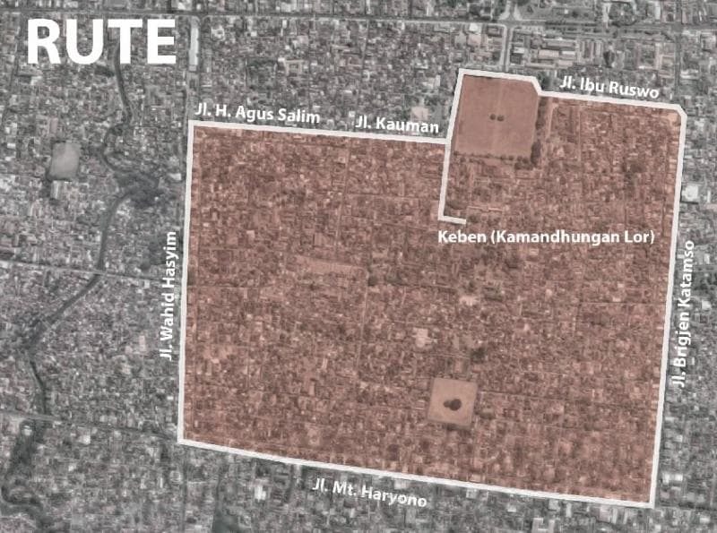 Perjalanan mengitari benteng keraton ini cukup jauh lo. Dengan arah berlawanan dengan jarum jam, peserta tradisi ini harus berjalan kaki sekitar 5 kilometer. Rute jalan kakinya dimulai dari Kompleks Kamandungan Lor dan dilanjutkan ke Pojok Beteng Kulon, Plengkung Gading, Pojok Beteng Wetan, Jalan Ibu Ruswo, Alun-Alun Utara, dan kembali ke Kamandungan Lor.