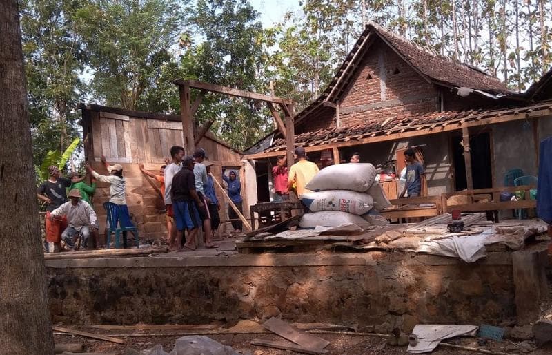 Gawe Omah, sambatan yang dilakukan beramai-samai mendirikan rumah. (Instagram/Lusiyono)