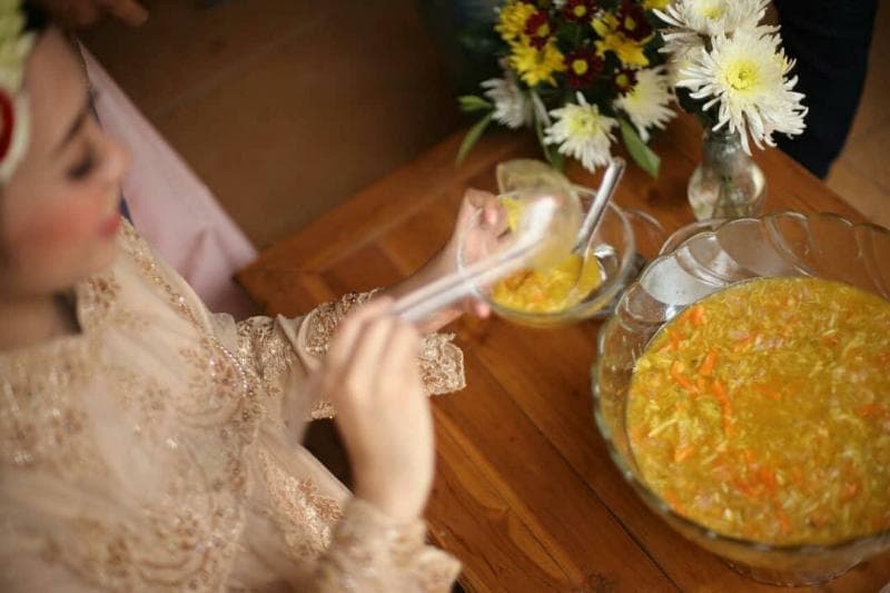 Prosesi jualan rujak oleh sang ibu pada tradisi tingkeban. (Twitter @Allwahid805)
